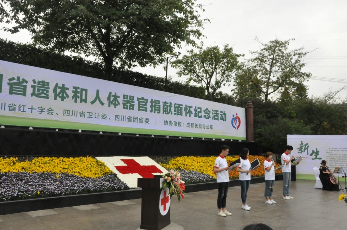 3月27日,传统清明节来临之际,由四川省红十字会、四川省民政厅、四川省卫计委、四川省团委特别联合主办,由长松寺协办的“心声!新生”人体器官捐献者缅怀纪念活动在成都长松寺公墓举行,中国造血干细胞捐献者资料库四川省管理中心及四川大学华西医院、四川省人民医院、电子科技大学医学院、成都医学院等单位和组织参与了此次活动。最后,活动分会场举行了省红会筹建的器官捐献者缅怀纪念园奠基仪式,来自省红会21个市州的红会代表也携带了当地的泥土汇聚于此。在《爱的奉献》歌声中,缅怀活动顺利结束.