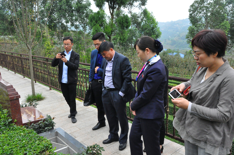 随后,考察团参观了大型浮雕式生态节地壁葬园区《芙蓉印象》,壁葬园区以“望江春色”“青羊宫观”“漢昭烈廟”“草堂叠翠”成都四景为壁画主题,对造型精美,凸显人文气息,俨然园区一景的壁葬园区表示叹为观止,并详细咨询了壁葬的设计工艺,入住情况、推广情况。并结合杭州当地的生态节地葬推行情况进行了深入的交流。