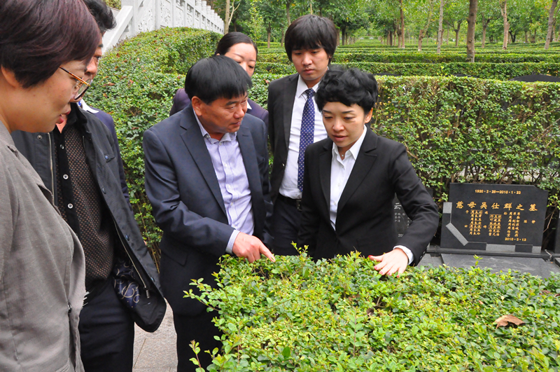 的墓区表示值得学习,如长松寺墓碑均由小叶女贞进行精心环绕,在高度和宽度上有着严格园艺标准,保证了远观墓园如茶山一般的视觉效果。这一先进理念也得到了考察人员的高度评价,纷纷表示将会把这一种墓区绿化方式带回本地。并详细询问了培植、维护方式。